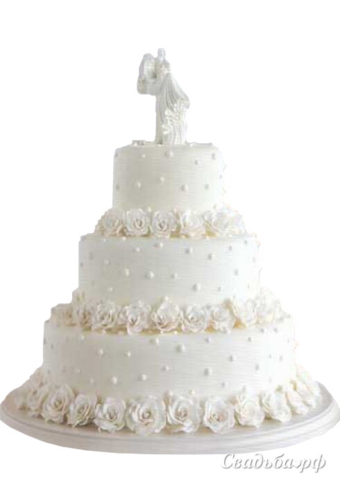 Свадебный торт «Жемчужный белый романс« вы можете заказать в исполнении «сливки» 750р/кг и »мастика» 1100р/кг