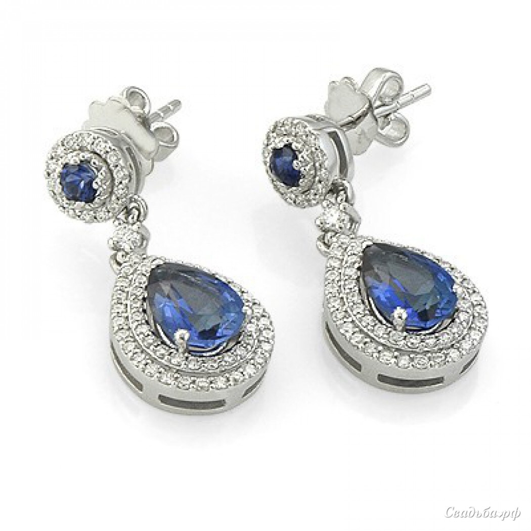 Серьги-пусеты для невесты из белого золота с бриллиантами и сапфирами! Идеальное украшение для любой невесты!