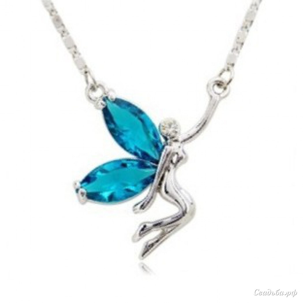 Оригинальное и нежное колье-фея из белого золота с сапфирами.