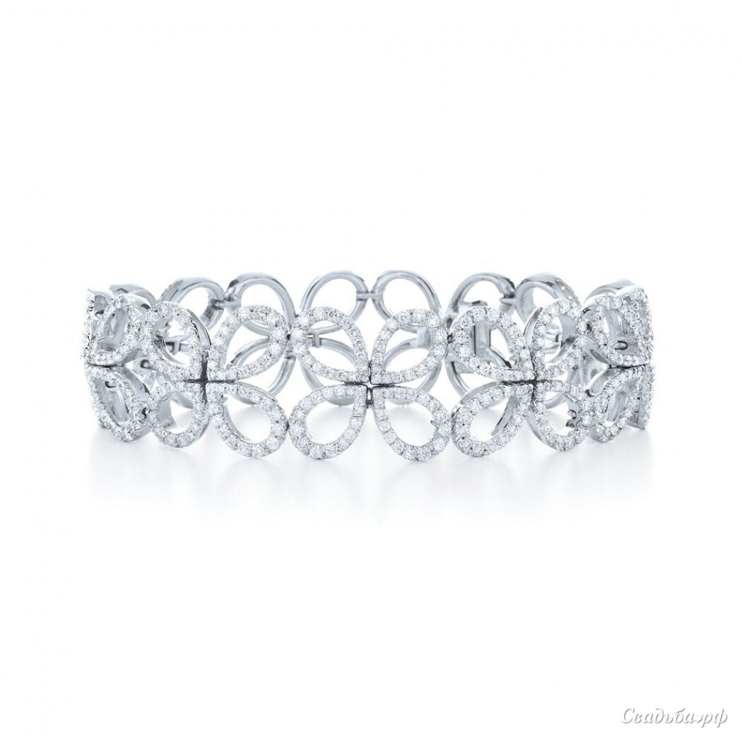 Нежный браслет для невесты из белого золота с бриллиантами. Возможно исполнение в золоте другого цвета, с различными драгоценными вставками.