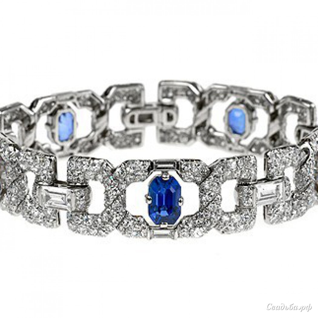 Браслет для невесты из белого золота с бриллиантами и сапфирами.
