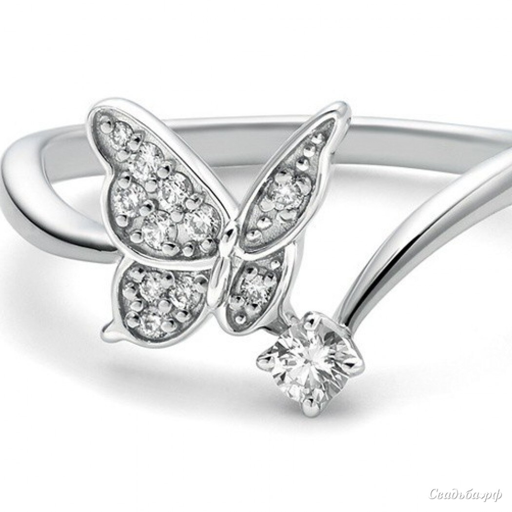 Нежное маленькое кольцо для невесты - бабочка из белого золота с бриллиантами.Возможно исполнение в золоте другого цвета, с различными драгоценными вставками.