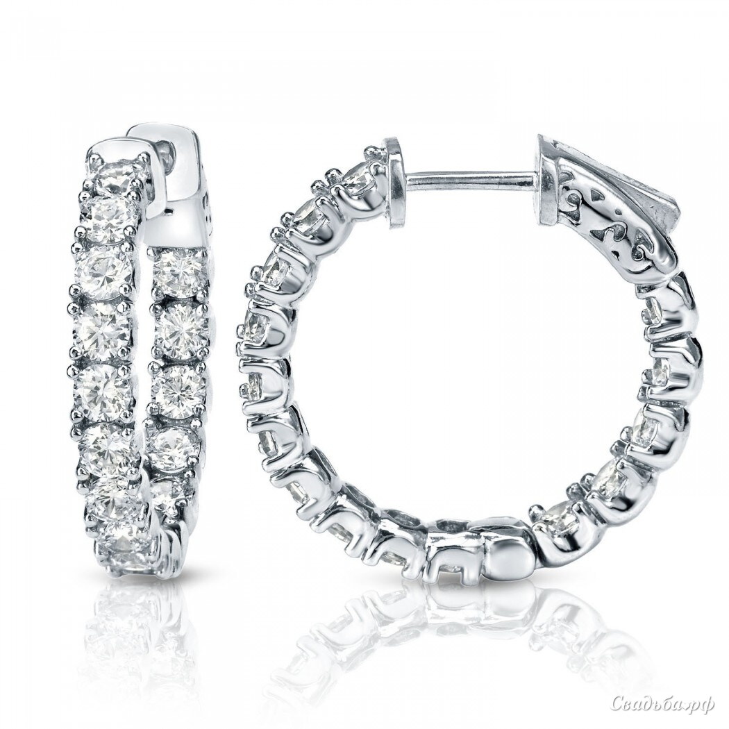 Серьги колечки из белого золота с бриллиантами. Изысканная классика на все времена!Возможно исполнение в золоте другого цвета, с различными драгоценными вставками.