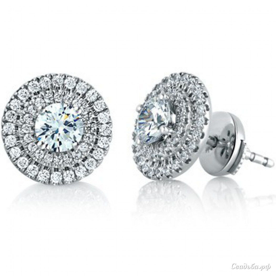 Изысканные серьги-гвоздики для невесты из белого золота и бриллиантов. Классика на все времена!
