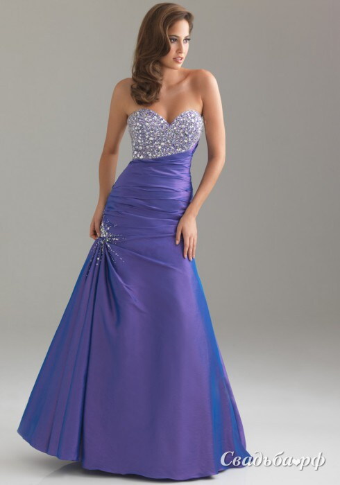 Роскошное вечернее платье из новейшей коллекции 2014 года будет уместно смотреться на любом торжестве. Миниатюрный сверкающий корсет и изящная вставка на бедре придают платью особый шик. Лёгкая драпировка на талии выгодно подчёркивает женственные изгибы фигуры. Длинная юбка постепенно расширяется к полу и зрительно вытягивает силуэт.