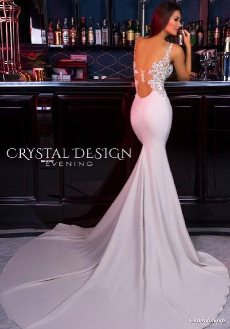 Утонченное вечернее платье-русалка с прозрачными вставками.