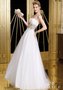 Великолепное вечернее платье классического белого цвета. Фигурный лиф соблазнительно открывает плечи и зону декольте и плотно обтягивает грудь. Линия талии эффектно выделена широким декоративным поясом из крупных стразов. Длинная пышная юбка выполнена из нескольких слоёв полупрозрачной лёгкой ткани. Она красиво струится вдоль фигуры и ниспадает на пол.