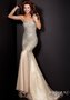 Роскошное вечернее платье со шлейфом элегантного кремового цвета. Платье расшито крупными стразами и блёстками. Лиф – открытый, прямой. Длинная многослойная юбка красиво струится вдоль ножек и ниспадает на пол. В настолько изысканном и стильном платье очень легко почувствовать себя сказочной принцессой или прекрасной Русалочкой.