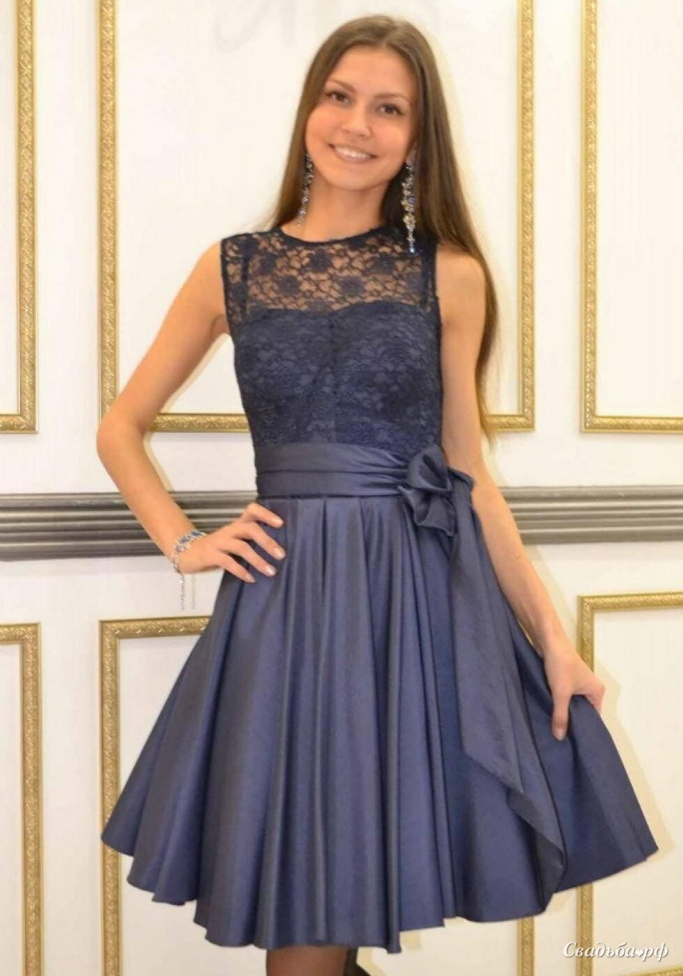 Короткое вечернее платье с пышной юбкой и кружевным лифом. На спине шнуровка. www.anna-salon.com