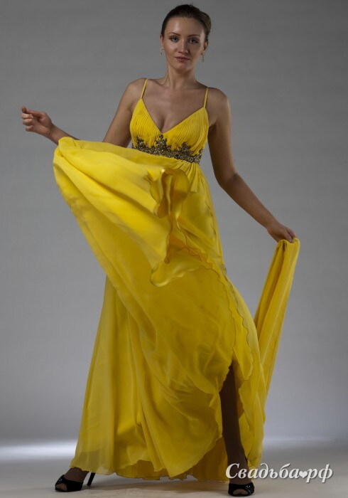 Платье в греческом стиле, под грудь. Лиф на тонких бретелях задрапирован шифоном. Под грудью проходит красивый декоративный пояс, расшитый бисером и бусинами. Силуэт – свободный, летящий. В таком платье даже будущие мамочки смогут выглядеть особенно очаровательно и элегантно. Модель представлена в нескольких цветах.