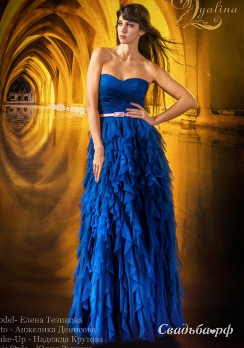 Вечернее платье Абелла из коллекции Рассыпающая Звезды... от дизайнера Svetlana Lyalina создано для самых стильных красавиц. Миниатюрный корсет с соблазнительной зоной декольте гармонично сочетается с длинной юбкой свободного покроя. Многоярусные воланы с неровными краями придают образу торжественность. Талия подчёркнута контрастным поясом.