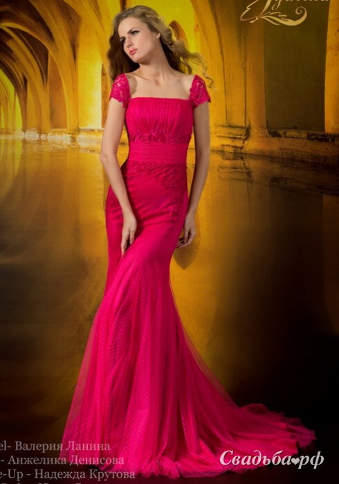 Вечернее платье Рубина из коллекции Рассыпающая Звезды... дизайнера Svetlana Lyalina приглянётся роковым красоткам. Соблазнительная зона декольте обрамлена ажурными бретелями. Драпированный корсет с широким поясом выгодно подчёркивает достоинства фигуры. Длинная юбка облегает бёдра и постепенно переходит в шикарный шлейф.