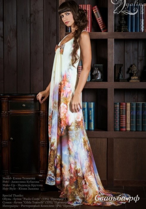 Вечернее платье Байли из коллекции Рассыпающая Звезды... дизайнера Svetlana Lyalina может похвастаться ярким цветочным принтом и свободным кроем. Идеальный наряд для летнего торжества. Открытая зона декольте обрамлена широкими бретелями и кокетливым бантом на груди. Струящееся платье переходит в кокетливый шлейф. Вас точно заметят!