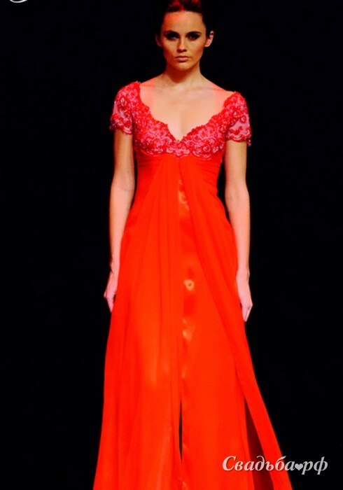 Вечернее платье Уитни из коллекции Шестое Чувство дизайнера Svetlana Lyalina понравится роковым красавицам. Это огненно-красное платье с соблазнительной зоной декольте и ажурными вставками на груди и плечиках приковывает к себе взгляды. Длинная юбка свободного покроя струится до самого пола и зрительно вытягивает силуэт.