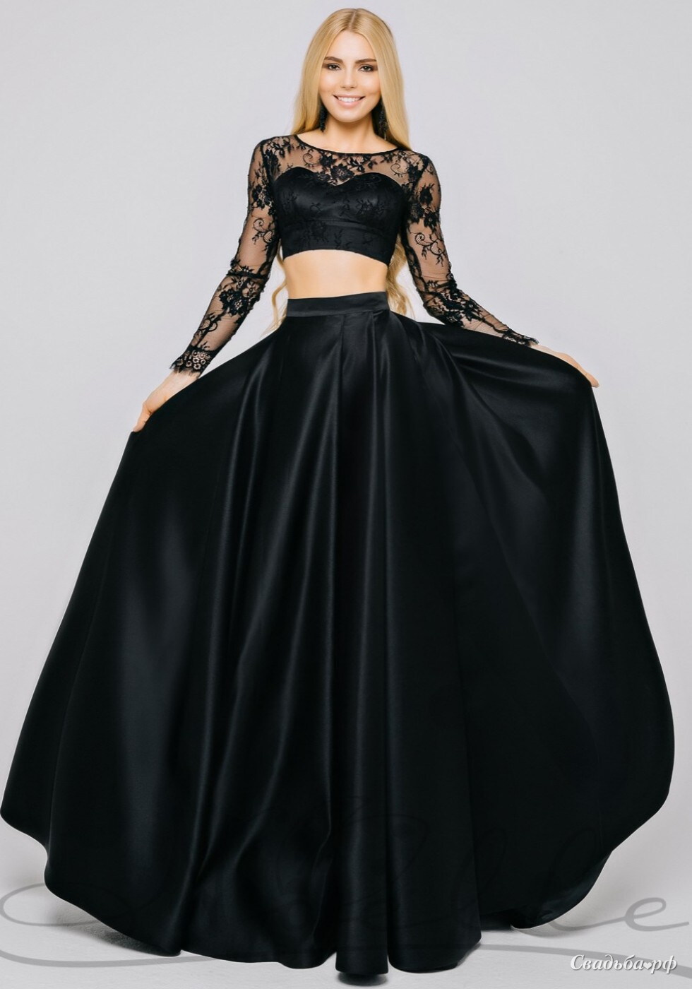 В наличии! Тренд этого сезона! Кружевной топ с длинным рукавом и струящаяся юбка из атласа-дюпонта. Эксклюзивно в свадебном салоне "Belle Amore"!