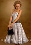 Сочетание вертикальных полос на корсете и юбка в горох - идеальный образ из 60-х! Слегка заниженный корсет с открытой зоной декольте приковывает внимание к бюсту и оголённым плечикам своей обладательницы. Граница между юбкой и корсетом обозначена сверкающим поясом. Объёмная юбочка доходит до уровня колен. Элегантно и игриво одновременно.