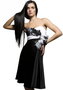 Необычно задрапированный корсет с пикантной зоной декольте акцентирует внимание на плечиках и груди своей обладательницы. Завышенная талия подчёркнута широким поясом с крупным цветком ручной работы. Струящаяся юбка доходит до уровня колен. Наряд поможет Вам скрыть малейшие недостатки фигуры и продемонстрировать стройные ножки.
