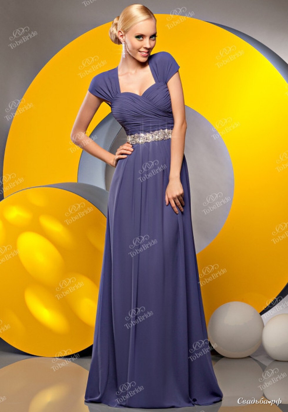 Строгое и элегантное платье с задрапированным лифом и изящными рукавчиками поможет Вам оказаться в центре всеобщего внимания. Ослепительный пояс выполнен из страз и пайеток. Наряд выгодно подчёркивает бюст и талию. Длинная юбка свободного кроя струится до самого пола и зрительно вытягивает фигуру. Вы будете казаться ещё выше и стройнее.