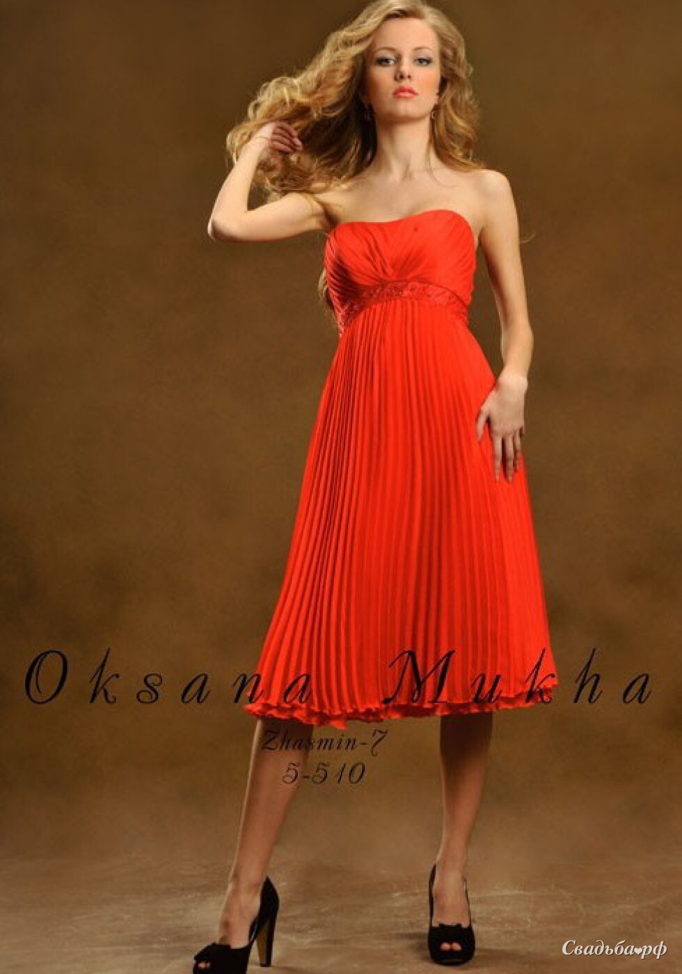Бордовый оттенок этого платья - выбор уверенных в себе девушек! В декольтированном платье с завышенной талией и плиссированной юбкой, зрительно вытягивающий силуэт, Вы будете в центре внимания.