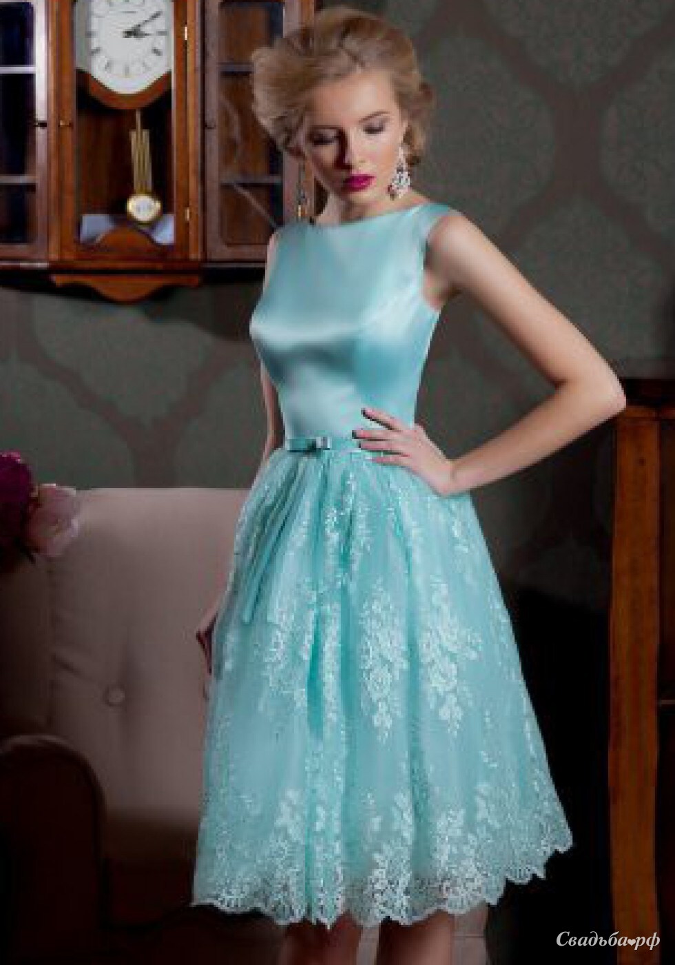 Элегантное вечернее платье нежного цвета неба. Атласный лиф и кружевная юбка придают Вашему образу неповторимость!