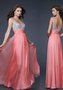 Яркое элегантное длинное платье с шифоновой юбкой и расшитым кристаллами лифом