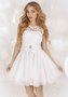 Легкое коктейльное платье. Подойдет и как свадебный вариант. Верх — нежное ажурное кружево. Низ — летящая юбка длиной до колена.