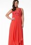 Нежное, летящее, легкое вечернее платье в различных цветовых вариациях. На лифе прозрачная сеточка с красивой вышивкой, на спинке от плеч летящие фалды. Есть в наличии с 44 до 52 размера.