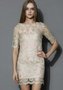 Платье-футляр с рукавом 3\4 из платного кружева золотого цвета с вышивкой. На подкладе.