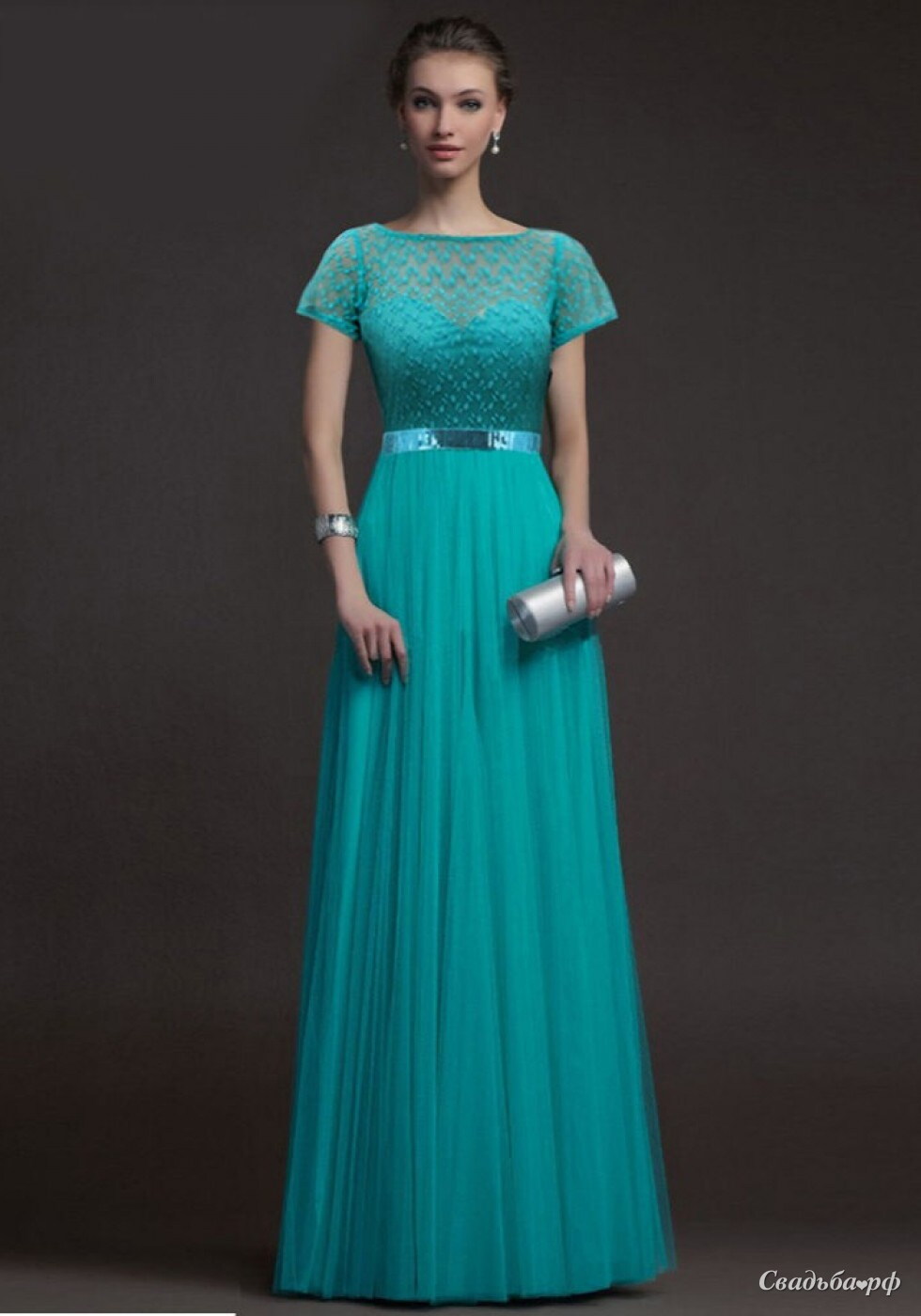 Стильное вечернее платье с прямой юбкой из еврофатина.