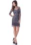 Короткое платье с длинными рукавами выполнено из полупрозрачной сетки расшито пайетками и стеклярусом, образующими изумительный узор. Необычный цвет платья, решение силуэта в стиле "футляр" с длинным рукавом способствуют созданию яркого, провокационного, но в то же время совершенно не пошлого образа. Платье идеально подходит для любой вечеринки или клуба.