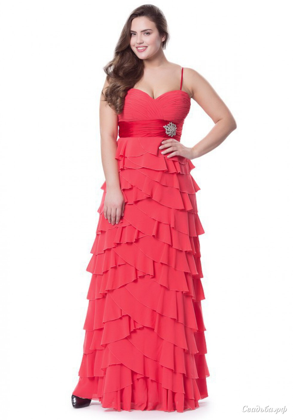 Роскошное вечернее платье – залог успешного вечера. Многоярусное сногсшибательное вечернее платье не оставит равнодушной ни одну девушку, делая ее образ просто неповторимым. Платье сделано из шифона под натуральный шелк. Длину этого платья можно регулировать за счет уменьшения рюш. Пояс на талии сделан из сатина, который идеально сочетается с жатым лифом. А съемная брошь с камнями добавляет образу женственности. На спине перекрестная шнуровка. Платье идеально садится на любой тип фигуры.
