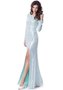 Длинное облегающее платье с разрезом и рукавами, мерцает и искрится! Платье сверху до колен расшито блестящими камнями разного размера и пайетками.