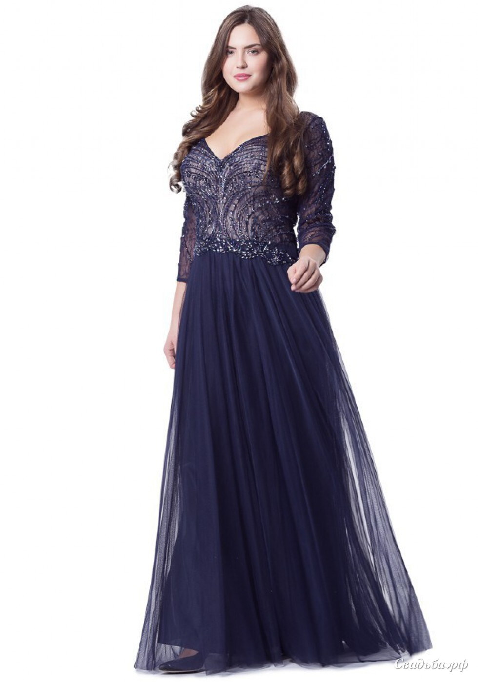 Шикарное вечернее платье, которое уже является хитом будущего сезона. Оно прекрасно украсит любую девушку. Сшито платье полностью из холодного трикотажа, шифона и сетки. Платье отлично тянется и удачно сядет за счет этого на любой размер, которые широко представлены в ассортименте. Данная модель имеет длинный рукав, V-образный вырез визуально вытянет вашу фигуру.