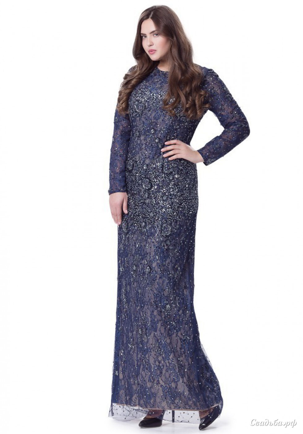 Шикарное вечернее платье, которое уже является хитом будущего сезона. Оно прекрасно украсит любую девушку. Сшито платье полностью из мягкого гипюра. Платье отлично тянется и удачно сядет за счет этого на любой размер, который широко представлен в ассортименте от 48 до 54. Сбоку потайная молния. Данная модель имеет длинный рукав. Сзади разрез, он подчеркнет стройность ног и придает силуэту утонченности. Это вечернее платье представлено в двух цветах: голубой топаз и темно-синий, именно эти цвета идеально подойдут практически любой девушке.