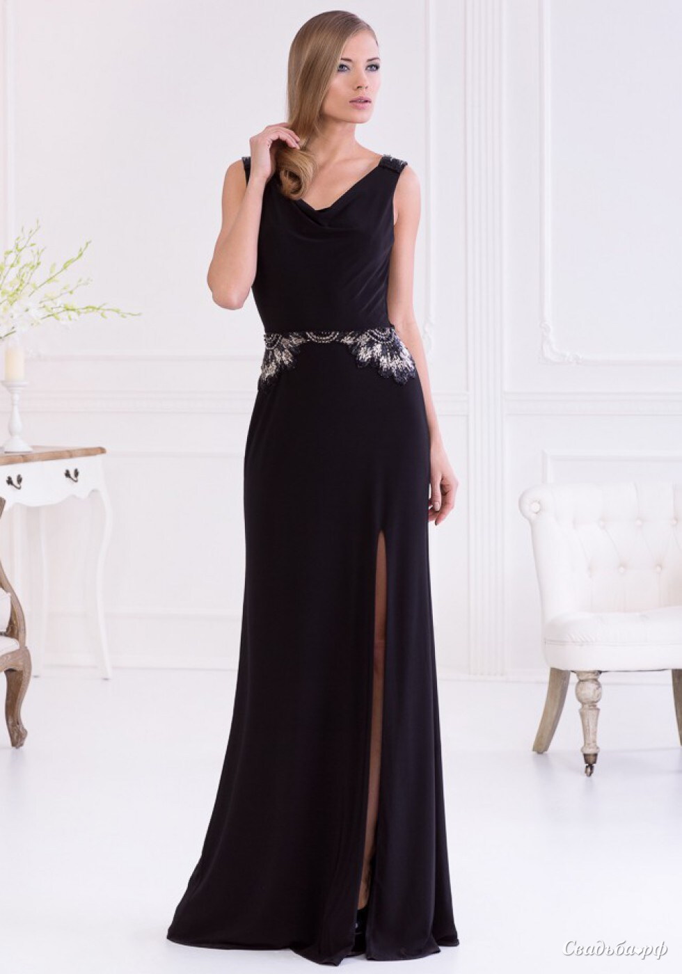 Любое торжественное мероприятие пройдет отлично, если ваш выбор пал на это роскошное длинное вечернее платье. Этот наряд выполнен из мягкого трикотажа, который комфортно садится по телу. Вырез впереди на груди сделан в форме качели, которые очень элегантно подчеркивают линию плеч и груди. На спине вырез так же сделан в виде глубокой качели до талии. Спина выполнена из нежного кружевного гипюра с оригинальной вышивкой ручной работы.