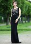 Шикарное вечернее платье из мягкого трикотажа прекрасно садится на любую фигуру. Оригинальная аппликация на груди из пайеток, вышитых вручную, дополняет образ и добавляет женственности и шика. Модель платья сделана в форме маечки с полупрозрачным верхом из сетки. На спине модель выполнена тоже в форме маечки из полупрозрачной сетки, при этом создается эффект асимметрии двух сторон. Платье длинное в пол делает силуэт более стройным.