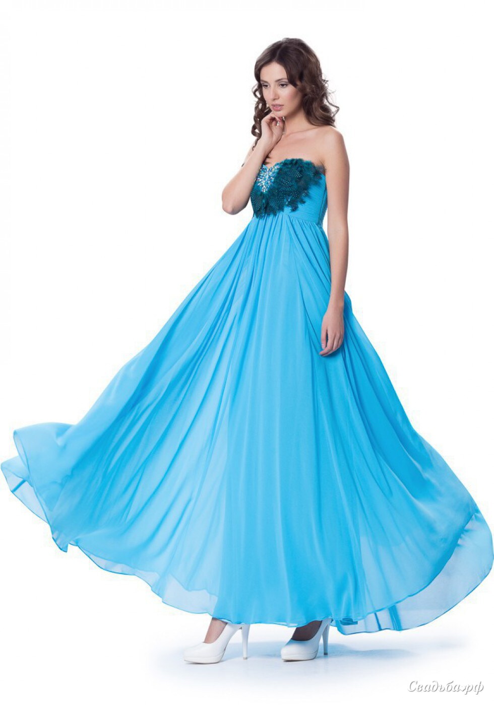 Необычный наряд не оставит равнодушным ни окружающих, ни свою обладательницу. Это экстравагантное вечернее платье из нежнейшего качественного шифона, декорированное пером в цвете фуксии и бирюзы смотрится просто шикарно. Верх платья в виде корсета, украшенного пером и сверкающими пайетками. Талия завышена, что делает силуэт более вытянутым, а значит более стройным. Поверх подкладки идет роскошная и легкая юбка-солнце, которая воздушно парит и кружится при любом появлении ветра. Универсальной и удобной делают эту модель съемные бретели, от которых можно избавиться в любой момент.