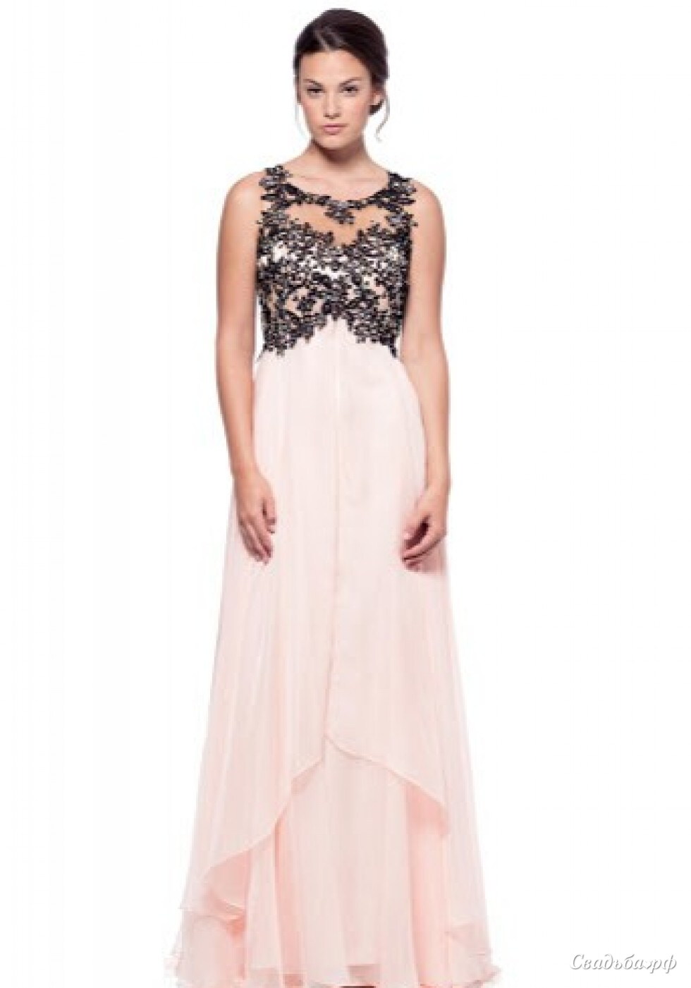 Очень нежное вечернее платье. Лиф ярко украшен черной вышивкой, а юбка очень красиво разлетается при ходьбе.