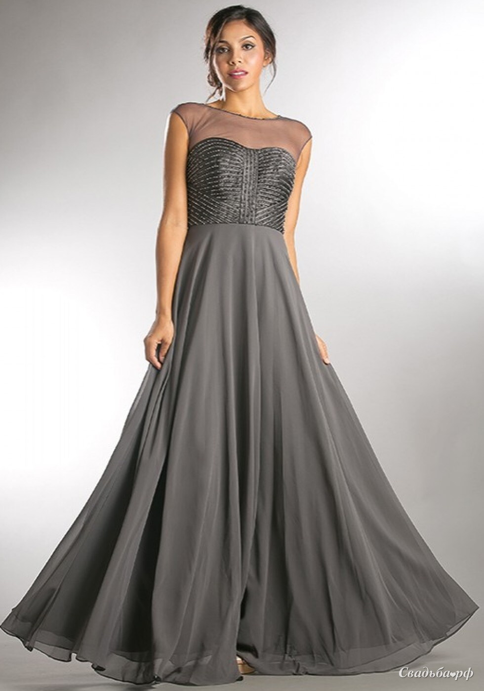 Волшебное вечернее платье в пол очень необычного темно-серого цвета.