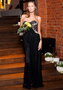 Очень элегантное вечернее платье классического чёрного цвета. Открытый фигурный лиф модели выполнен из белой ткани и задрапирован изысканным чёрным кружевом с изумительно красивыми цветочными узорами. От центра лифа вниз мягкими складами драпировки струится длинная юбка из чёрной непрозрачной ткани. В наличии есть большие размеры.