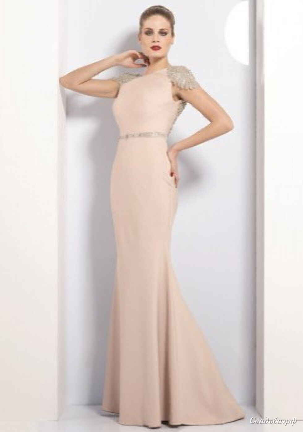 Вечернее платье, материал Джерси (стрейч). Плечи и спина платья расшиты кристаллами, бисером и стеклярусом. Линия талии обозначена тонкой сверкающей кристаллами лентой. Длинный струящийся по полу шлейф придает этой модели еще большую привлекательность. Индивидуальный пошив платья в любом цвете (с любыми дополнениями или изменениями) 25 дней.