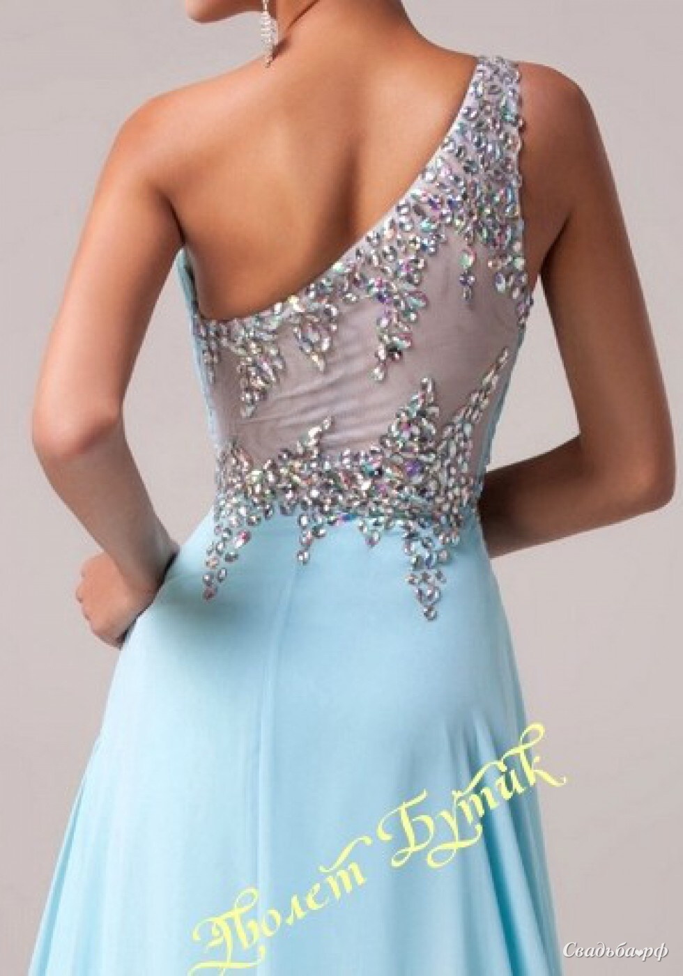Свадебное (вечернее платье) в греческом стиле, материал шифон. Бюст и талия выполнены в виде драпировки, расшиты мультикристаллами. Лиф с чашечками. Спина закрытая, расшита мультикристаллами на мягкой прозрачной сетке. Подкладка - сатин. На молнии (сбоку). Состав: 100% полиэстер.