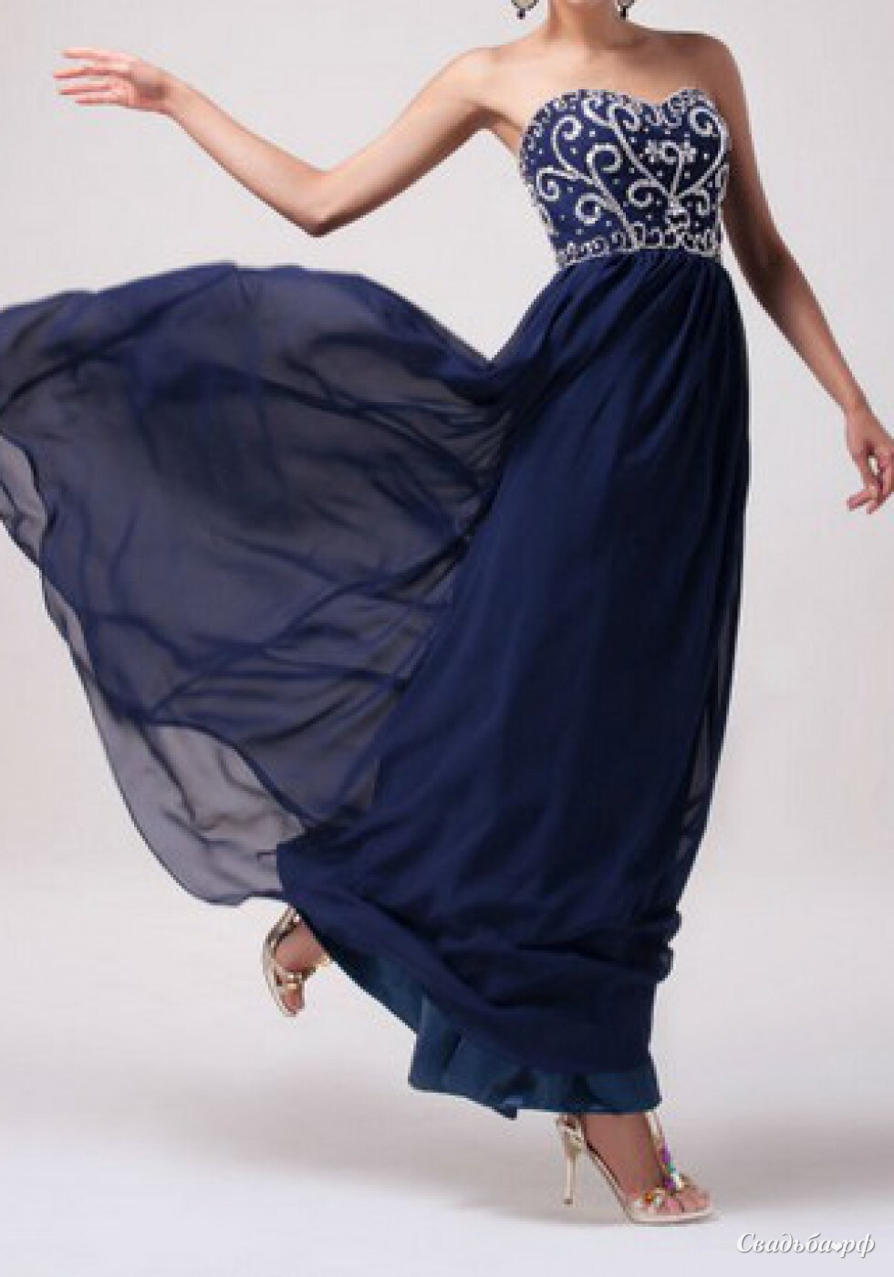 Вечернее платье из шифона. Верх выполнен в виде корсета, расшит бисером пайетками и стразами. Лиф с чашечками. Спина полуоткрытая. Шнуровка. Подкладка сатин. Состав: 100% полиэстер.