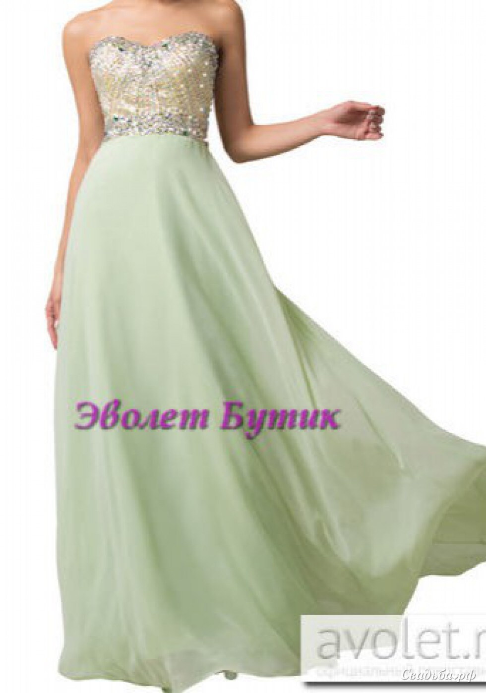 Вечернее платье из шифона. Верх выполнен в виде корсета, расшит бисером пайеткамии и стразами. Лиф с чашечками. Спина полуоткрытая. Шнуровка. Подкладка сатин. Состав: 100% полиэстер.