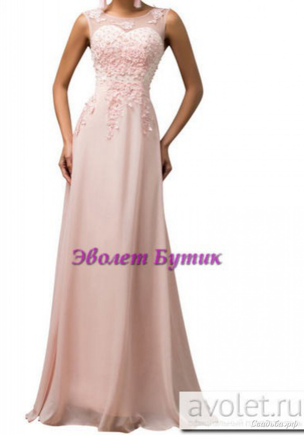 Вечернее платье, материал шифон. Верх платья с вырезом "лодочка", полностью расшит кружевом и бусинками. Подкладка сатин. Состав: 100% полиэстер. Эволет Бутик, www.avolet.ru, тел.: 8(915)-101-21-51