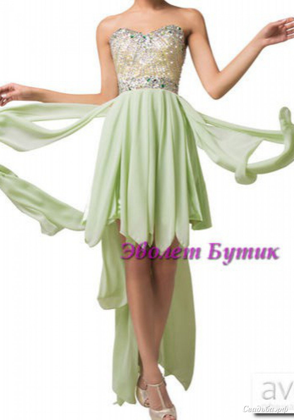 Коктейльное (вечернее) платье. Лиф платья расшит узором из пайеток и кристаллов. Вырез в форме «сердечко». Пояс расшит бисером и кристаллами. Лиф с чашечками. Юбка выполнена из воздушного шифона разной длины. Эволет Бутик, www.avolet.ru, тел.: 8(915)-101-21-51