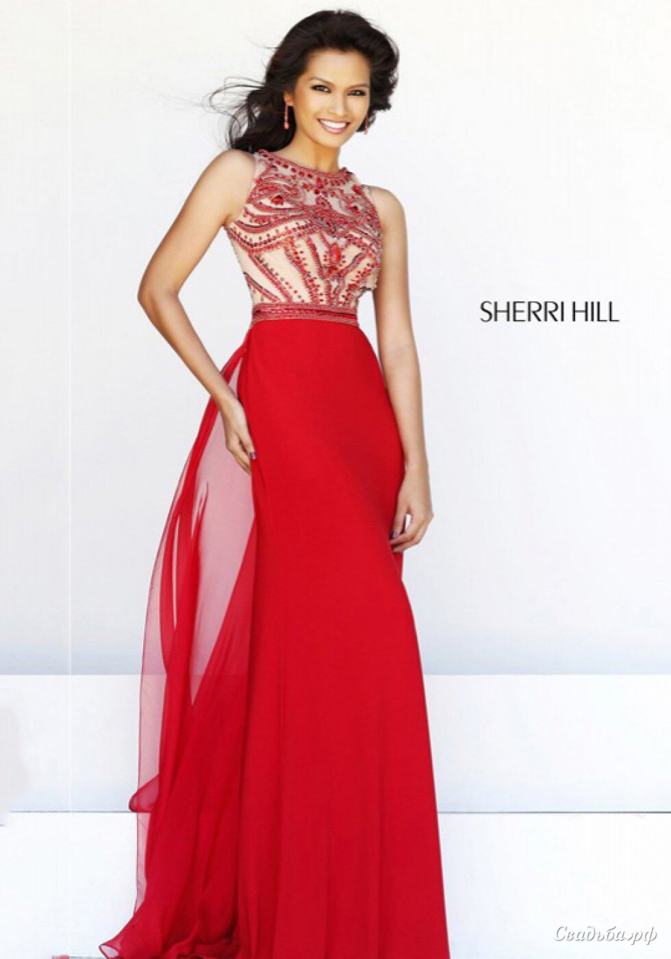 Длинное вечернее (свадебное) платье. Верхняя часть платья выполнена из прозрачной сетчатой ткани и расшита узорами из страз, бисера и пайеток. Лиф с чашечками. Юбка материал Джерси (Стрейч) + юбка материал шифон в виде шлейфа. Состав: 100% полиэстер. Индивидуальный пошив по меркам в любой цвете 20 дней с любыми изменениями или дополнениями! Эволет Бутик, www.avolet.ru, тел.: 8(915)-101-21-51