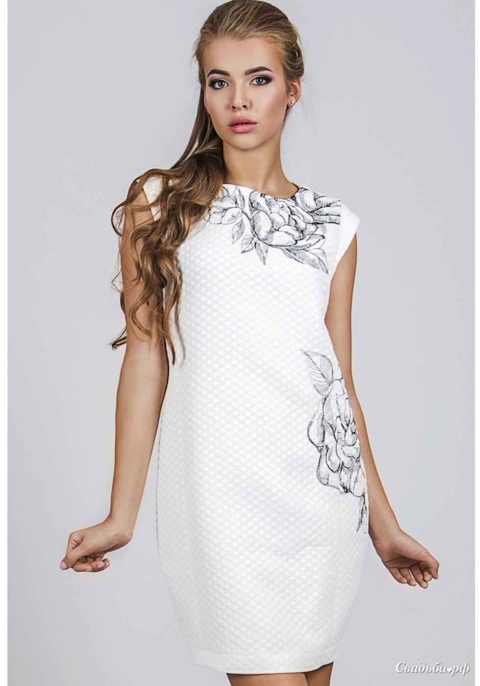 Платье силуэта «кокон» из жаккарда с вертикальными рельефами на полочке и спинке. Рукав-крылышко. В среднем шве спинки обработана металлическая молния.