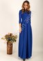 Прекрасное платье для встречи Нового года! Рукав 3/4. Длинная юбка визуально прибавляет роста, акцент на талии в виде игривого бантика придает образу непосредственности. На воротничке пришито украшение.