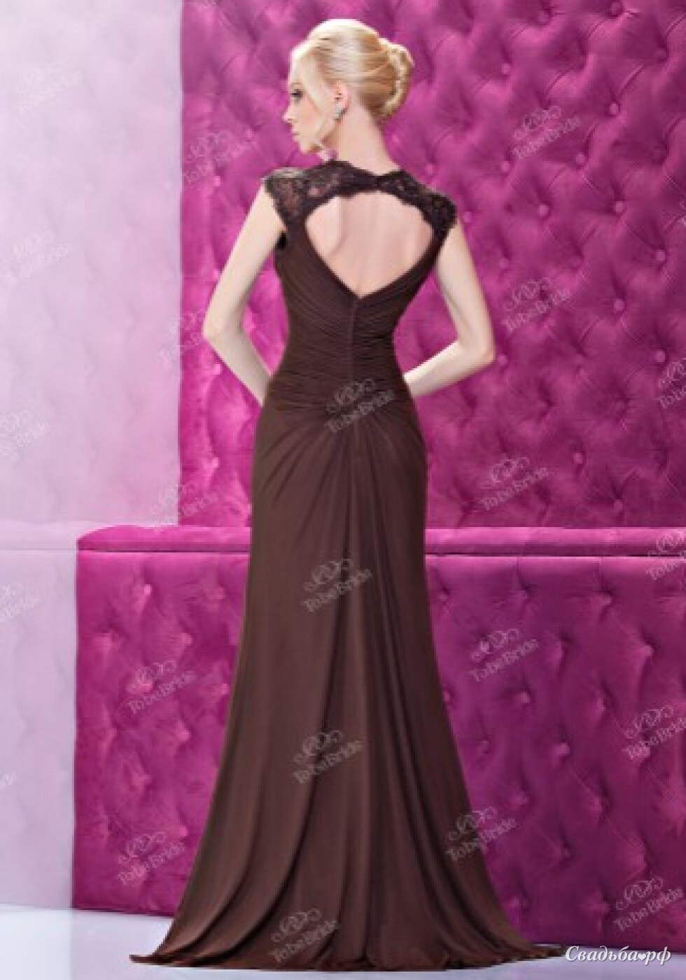 Роскошное платье глубокого шоколадного оттенка с открытой спинкой непременно станет хитом выпускного бала! Размер 40-42, цена 16 400 р. Подарок для выпускниц - бижутерия на выбор.